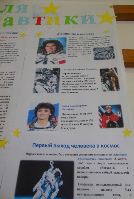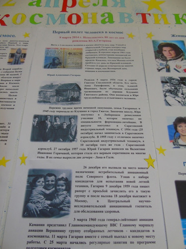 Космический выпуск школьной газеты ко Дню Космонавтики знакомит детей с выдающейся датой в мировой истории, с основоположниками космонавтики, с людьми, покорившими космос, с основными требованиями к будущим космонавтам.