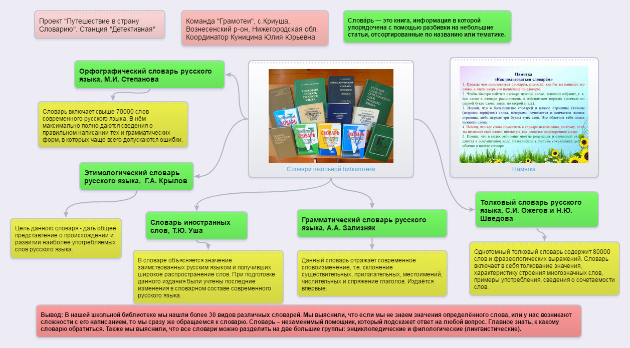 Команда "Грамотеи" успешно справилась в 1 этапом проекта. Мы посетили библиотеку, изучили словари, составили ментальную карту.