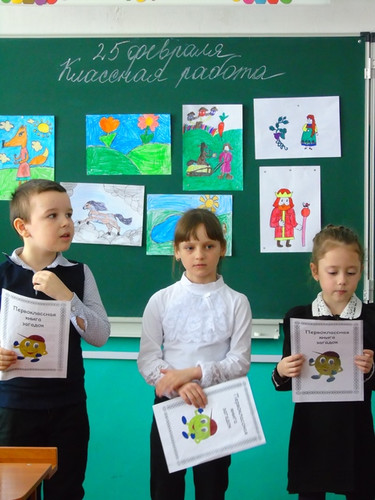Больше месяца команда "Книголюбы" участвовала во Всероссийском сетевом проекте "Чудеса в решете" на сайте Началка.com, организатор проекта Климкович Елена Владимировна. По результатам данного проекта первоклашки получили не только новые знания и умения, но и удовольствие от работы. Со всеми этапами работы наша команда успешно справилась. Нами были созданы множество сборников и видеоматериалов, которые нам пригодятся в работе. Сегодня, 25 февраля 2019 года мы с командой "Книголюбы" отправились к своим старшим товарищам, ребятам 3 и 4 классов. Для них у нас было подготовлено мини-мероприятие "Загадочный турнир" из сборника "Первоклассная книга загадок". Все ребята остались очень довольны. Также мы объявили свой конкурс на самую лучшую загадку. Теперь будем ждать победителей!