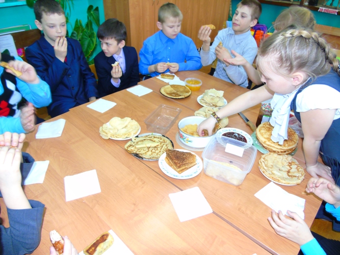 Наши мамочки постарались на славу, приготовили блинов с разными начинками, дали варенье разных сортов.